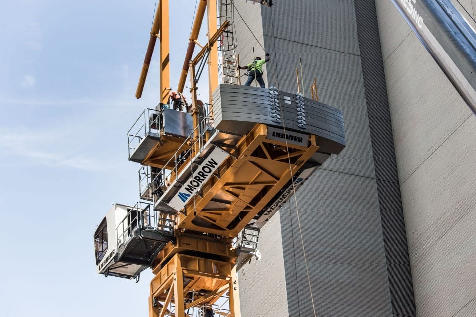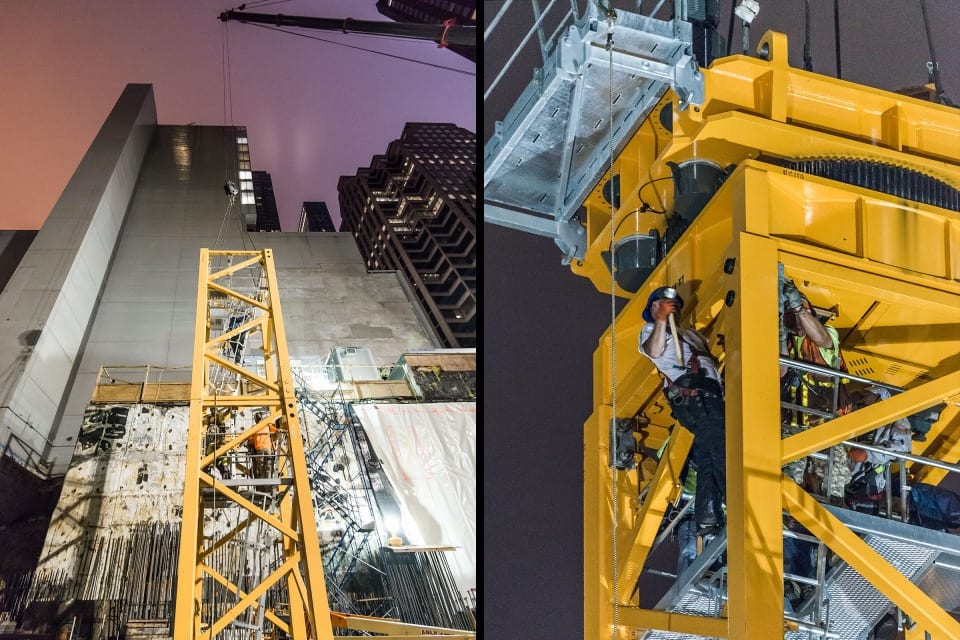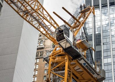 Sorbara was looking for a high-capacity tower crane that featured fast load cycles, a low external profile, and clean operation. The 710 HC-L arrived in North America just-in-time to meet the expectations of contractors in high-density urban environments. Sorbara leased two 710 luffing boom cranes from Morrow’s New York District. The first crane was erected within 17 hours of delivery to the jobsite keeping Sorbara on schedule and under budget for this phase of the project. This crane will have a 148 ft Hook Radius and will climb to 430 feet.
