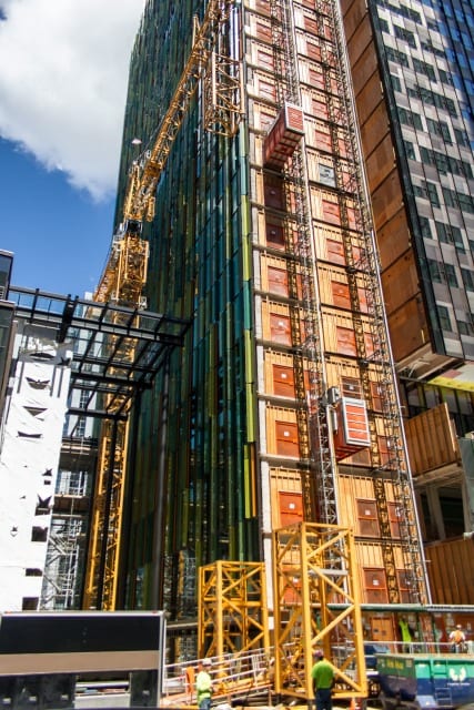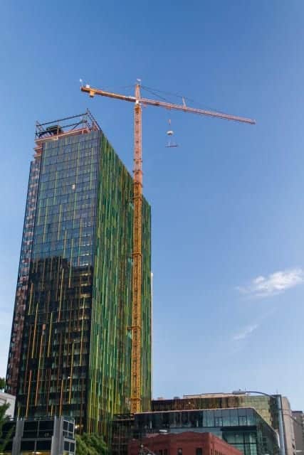 Many of the new commercial and residential high-rises utilize either the Liebherr 316 EC-H or 420 EC-H tower cranes, as can be seen in the accompanying panoramic image. The Alimak FC 7100-12 construction hoist can be seen throughout the Seattle-metro area and is a reliable choice for contractors to deliver workers and materials. Contractors are beginning to employ the luffing boom class of tower cranes such as the 540 HC-L and 542 HC-L. As Seattle’s urban core increases in density we expect the luffers to become a common site on the horizon.