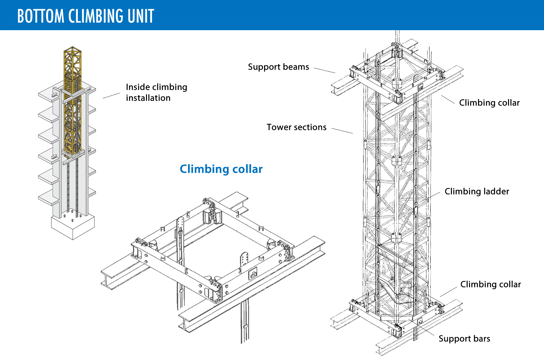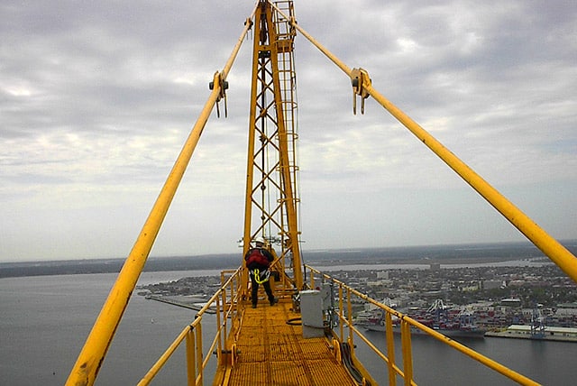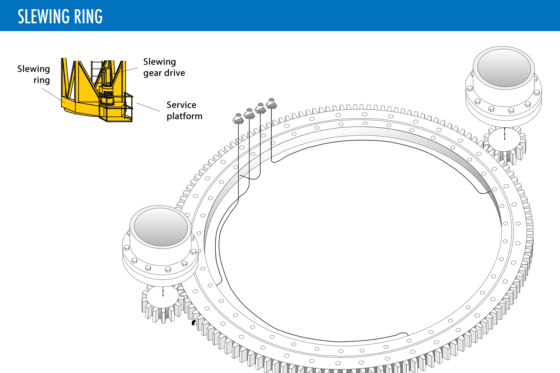 Tower cranes are seen on almost every major construction site throughout the world. These machines are built to lift heavy loads efficiently and safely. A modern tower crane consists of three major sections: the base, the tower mast, and the slewing unit. Roll-over the diagram below to learn more about major components of a tower crane. +Video | NEXT »