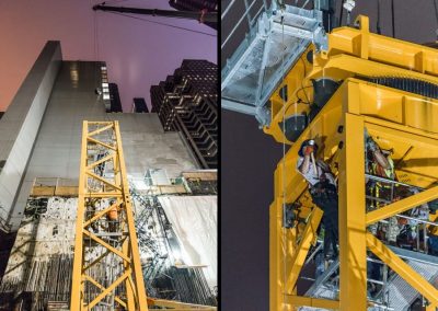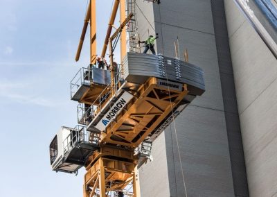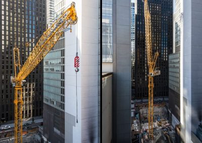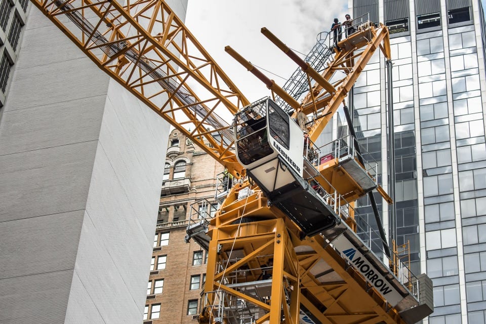Sorbara was looking for a high-capacity tower crane that featured fast load cycles, a low external profile, and clean operation. The 710 HC-L arrived in North America just-in-time to meet the expectations of contractors in high-density urban environments. Sorbara leased two 710 luffing boom cranes from Morrow’s New York District. The first crane was erected within 17 hours of delivery to the jobsite keeping Sorbara on schedule and under budget for this phase of the project. This crane will have a 148 ft Hook Radius and will climb to 430 feet.