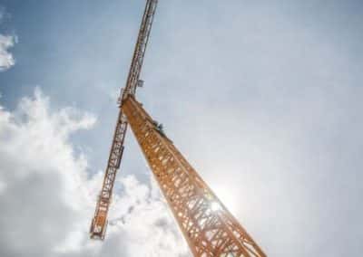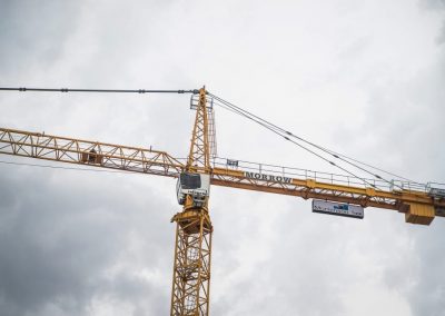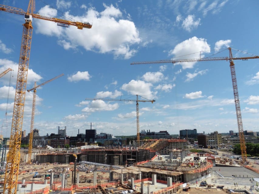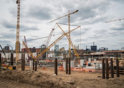 After Mortenson was awarded the NFL Minnesota Vikings stadium project, they contacted our St Louis district office to fulfill their need for a versatile and reliable lifting solution. Morrow Sales and Engineering provided a plan for Mortensen project managers that included a range of tower crane capacities from the 316 EC-H up to the 630 EC-H. In all, 5 Liebherr hammerhead tower cranes were employed on this $1.027 billion dollar project. The stadium is scheduled to open on time for the 2016 NFL season due in part to these reliable machines with responsive support from Morrow service at our St Louis and Chicago districts.