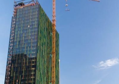 After GLY Construction was awarded the contract for the Allen Institute for Brain Science, they turned to long-time partner Morrow for their lift equipment needs. This new high-throughput science facility will be six stories tall with 245,000 sq. ft. of floor space for laboratory work, high-powered computing, robotic and other automated systems. A Liebherr 420 EC-H hammerhead crane and an Alimak FC 7100-12 construction hoist were used on this project.