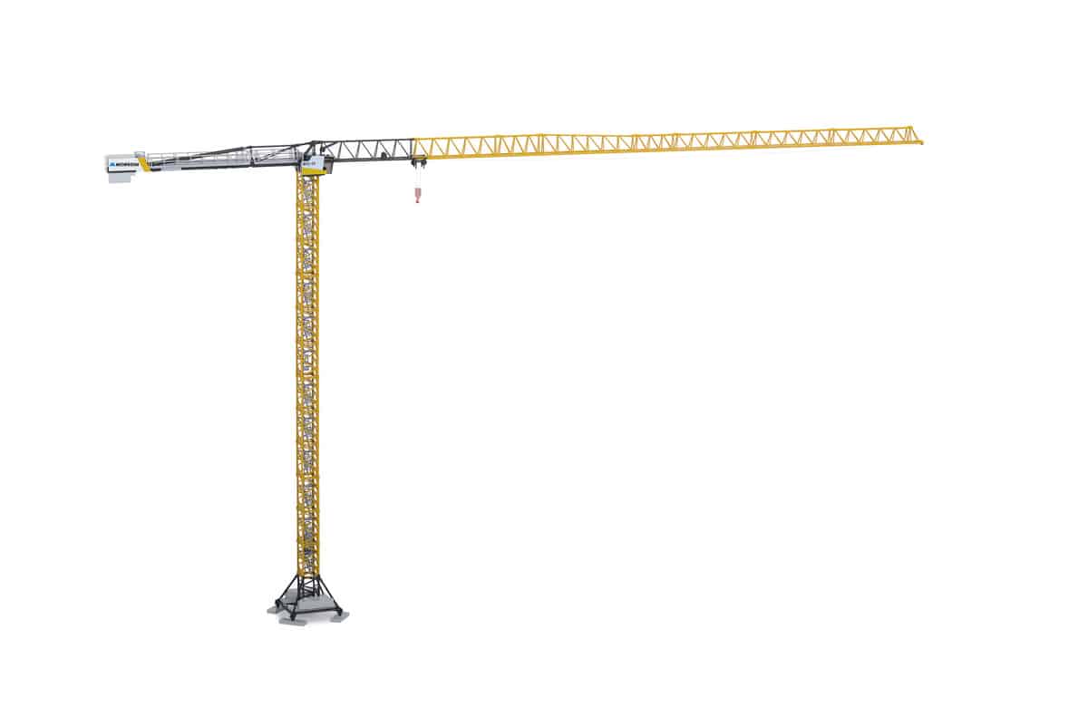 Model based on the Liebherr 370 EC-B Litronic flat top crane. Scale 1:87. Morrow logos on cab and counter-jib. Metal die cast with some plastic parts and accurate decals. Imported from Germany.