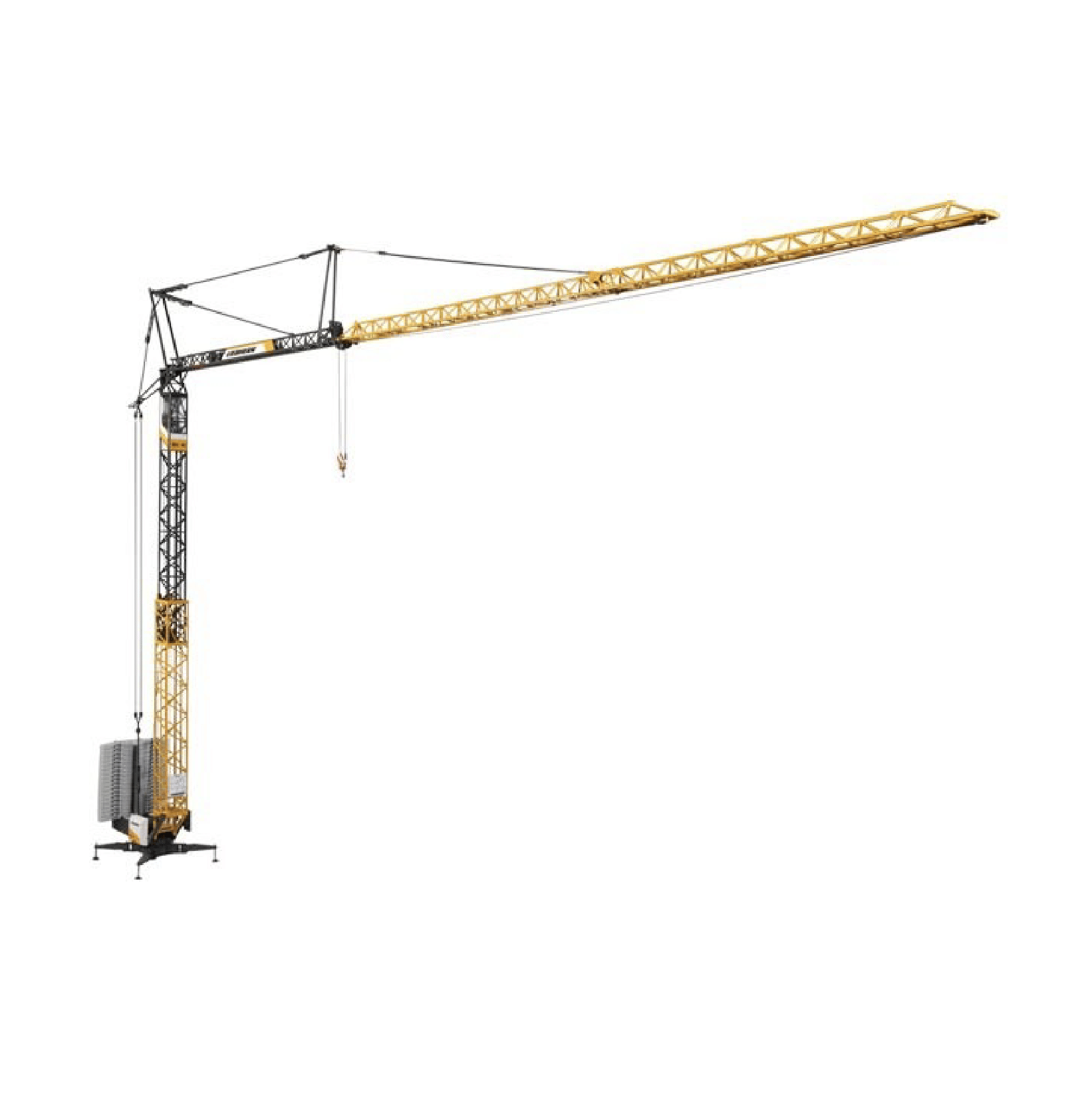 Model based on the Liebherr 81 K fast-erecting crane. Scale 1:50. Liebherr trademarked logos on cab and counter-jib. Metal die cast with some plastic parts and accurate decals. Manufactured by NZG. Imported from Germany.