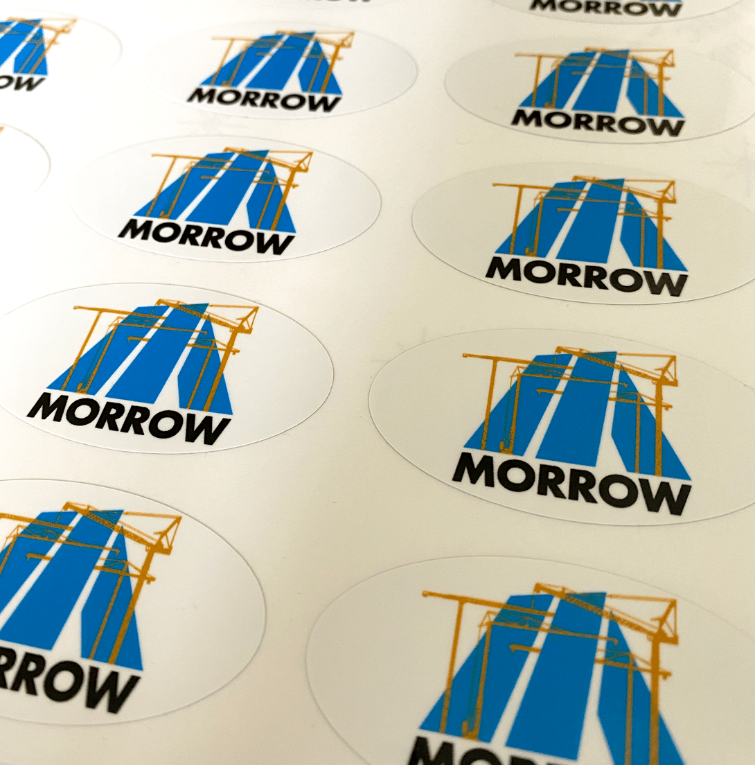 | Sticker Type | Yellow cranes on blue logo with black lettering |